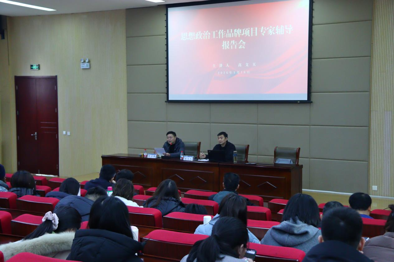 1月16日上午,党委宣传部举办思想政治工作品牌项目培育专家辅导报告会,邀请郑州铁路职业技术学院副教授高文天到校辅导,党委宣传部负责人主持。