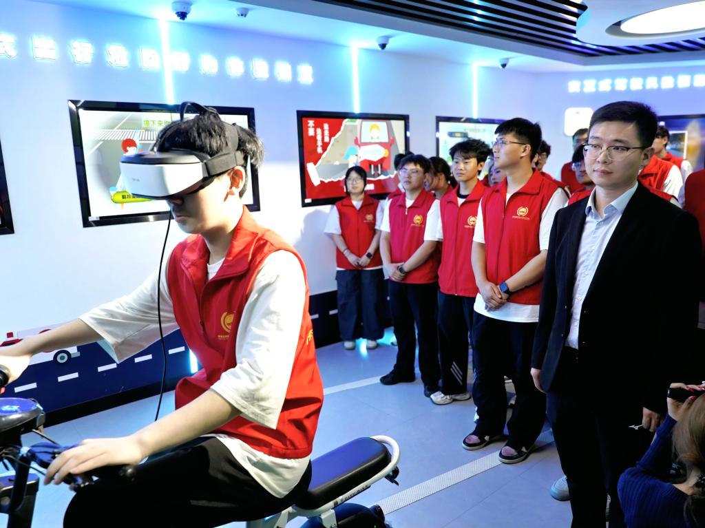 随后,同学们分组参与沉浸式安全教育。公交逃生演练中,同学们在民警引导下,学习安全锤使用方法,按规范路线有序撤离,切实掌握应急逃生技能。大家在互动区通过知识抢答等形式,强化安全记忆;在VR模拟体验区直观感受酒驾、疲劳驾驶等违规行为的危害,深刻认识守规重要性;在安全带体验区,借助模拟碰撞装置,真切体会安全带的“生命防线”作用,明确佩戴安全带的必要性。